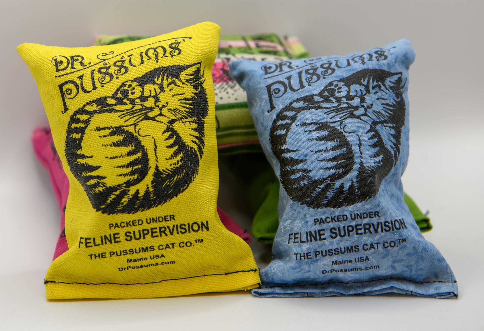 Single pillow, 4X3 inch hand sewn and filled with ONLY Dr. Pussums Fancy Feline Elixir PURE CATNIP, no fillers. Available in many colors and patterns. Great size for kitties who like to hold their toys with all four paws!