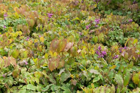 ‘Lilafee’ features lovely lavender-violet flowers in spring. Young foliage emerges bronze-purple, greens up in early summer, and returns to bronze-purple in the fall, providing multi-season interest. Ideal for shaded borders, woodland gardens, or as a colorful ground cover.