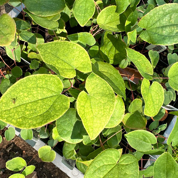 Large wine-purple flowers bloom in spring above green, spiny-toothed leaves, with new foliage emerging with a bronze cast. Excellent for woodland gardens or as a ground cover. Drought tolerant once established and adaptable to various soil conditions. Deer resistant.