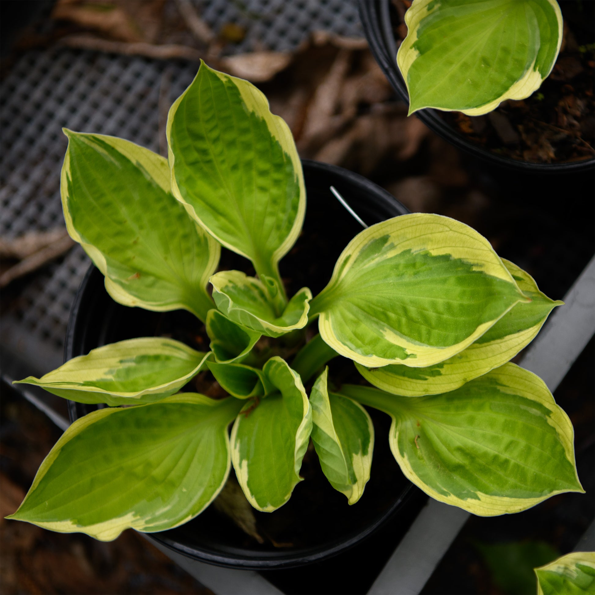 An eye-catching Hosta with leaves that transform beautifully through the season. Chartreuse centers are framed by dramatic white margins, with dark green streaks between the two creating a distinctive watermarked effect. This ever-changing foliage adds dynamic color and texture to the shade garden. In summer, elegant lavender flowers rise above the mound, completing the display.