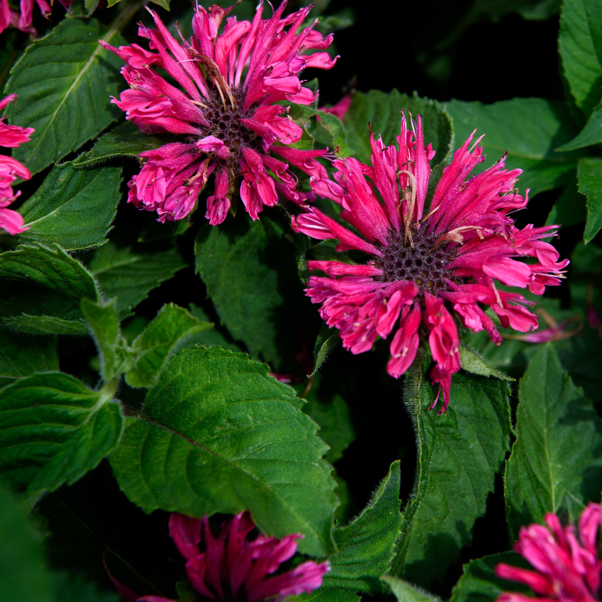 Monarda x 'Marje Purple' (Bee Balm) Compact, upright habit with a profusion of bright purple flowers atop mid-sized plants from mid-late summer. Fragrant and highly mildew resistant. Full - part sun. 12-15", Z5-8.